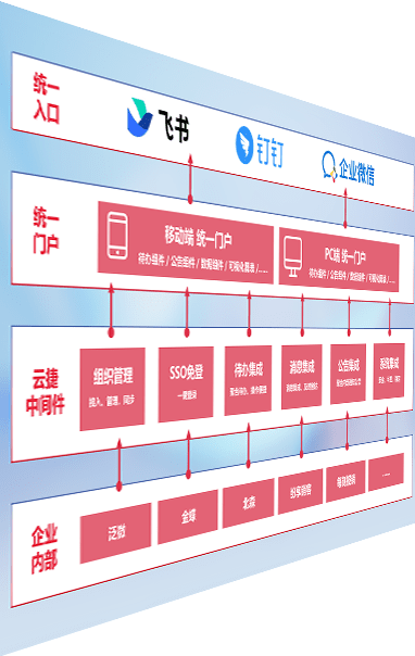 对协作平台提供支持服务,,支持企业应用与协作平台对接,,包含组织同步、、、消息集成、、、、待办集成等。。支持目前主流的协作平台:钉钉、、企微和飞书。。